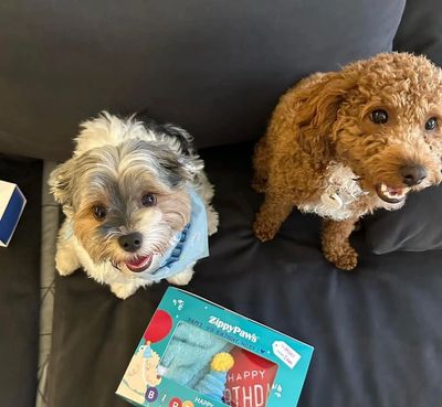Miles the Morkie~ (@miles_morkie) he recently turned 3! He is ready to play everyday & next to him is his “brother,” Ivan (@ivanthetoy) - toy poodle who is also from cutie poo pups but was adopted by my friend 🙂
